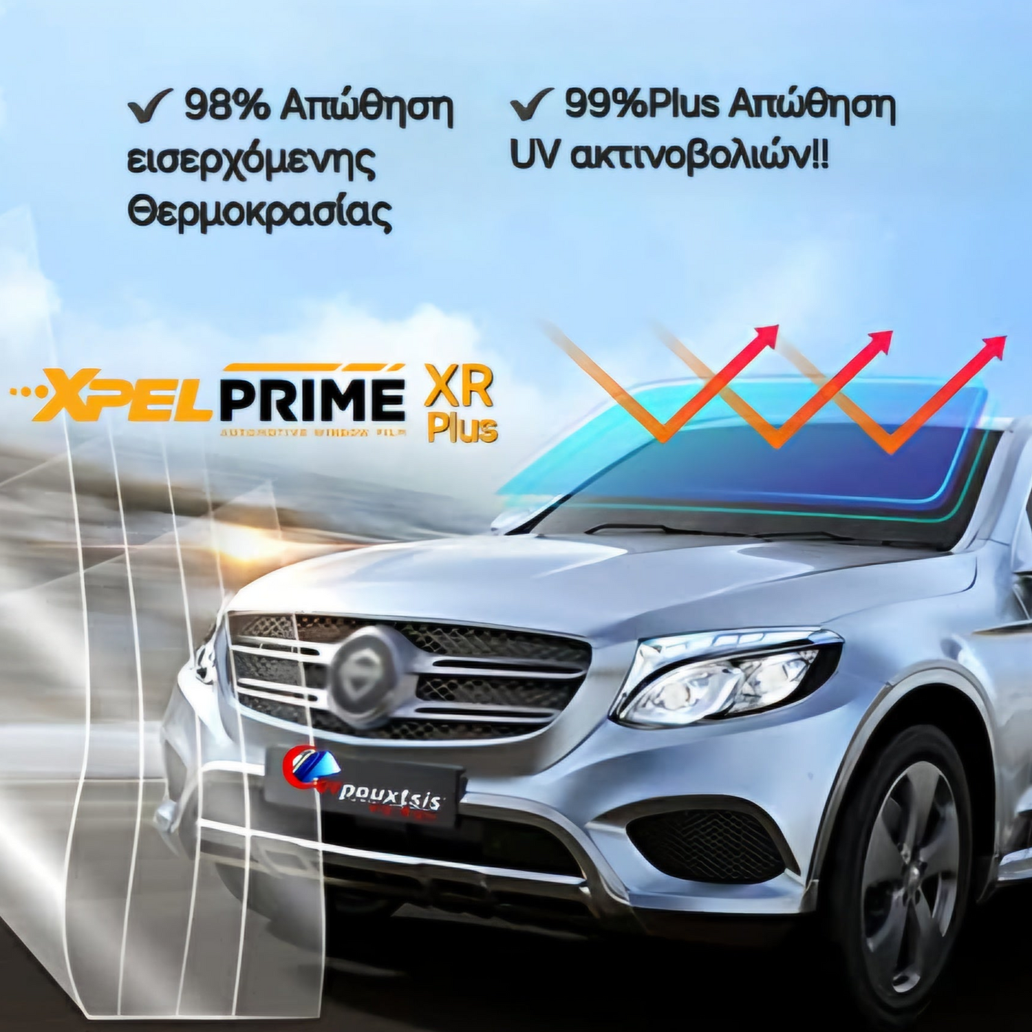 Η PRIME XR PLUS απορρίπτει έως και το 98% της υπέρυθρης ακτινοβολίας, κρατώντας το εσωτερικό του αυτοκινήτου σας δροσερό ακόμα και στις πιο καυτές μέρες.