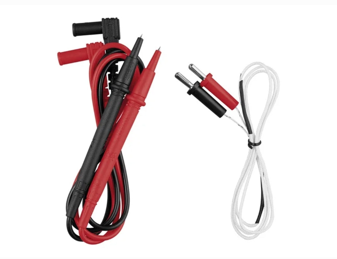 ✅️ Περιλαμβάνει 2 καλώδια μέτρησης, 1 αισθητήρα θερμοκρασίας και μπαταρίες (2 x AAA / LR6)